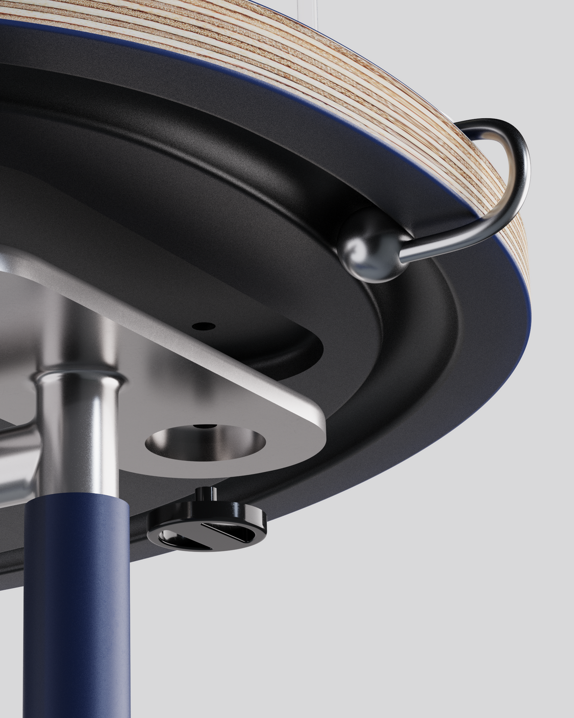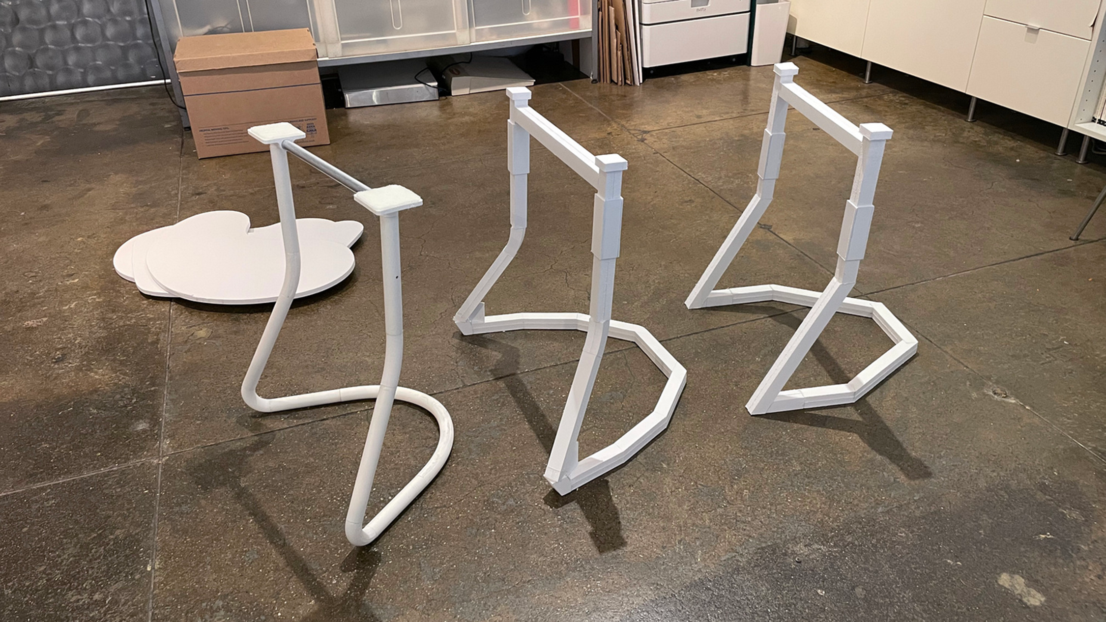 Intial foam core prototype with asymetric leg design. While different than the “normal” table leg configuration, we eventually departed from this direction. Concluding that the asymmetric configuration was different for difference sake rather than providing a distinct benefit for the end user